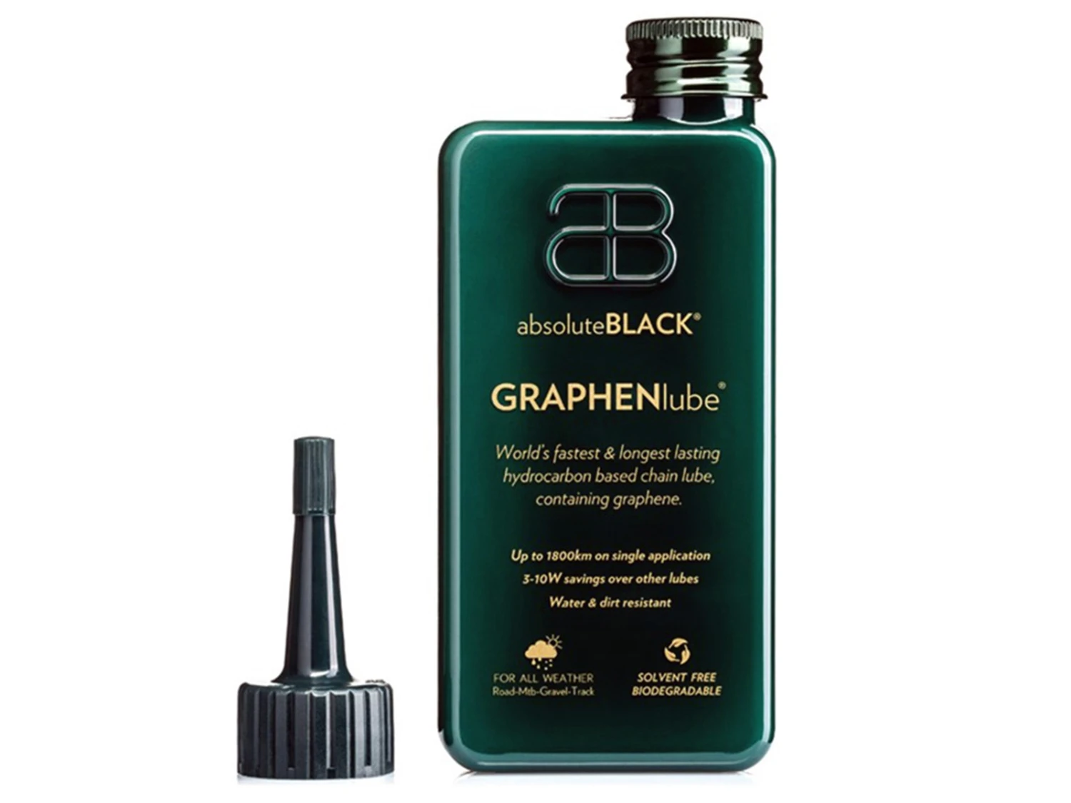 Absolute Black Graphenlube est un lubrifiant pour chaînes à base d’hydrocarbures (cire) qui contient du graphène, ce qui en fait le premier lubrifiant de ce type au monde. Ce produit offre une durabilité exceptionnelle avec une seule application, tout en maintenant une friction remarquablement stable dans des conditions humides et sèches. Il est considéré comme le lubrifiant ultime pour les chaînes de vélo, ayant remporté les victoires au Tour de France et à La Vuelta en 2020 et 2021, ainsi que le maillot rouge et vert au classement général. Il est très recherché par les coureurs professionnels pour sa performance.