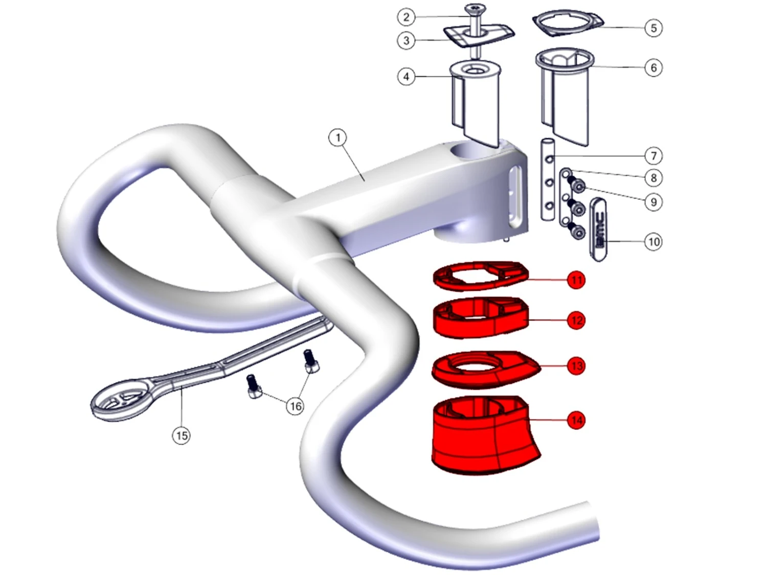 Topcone complet en rouge (référence 30001802) ou en noir (référence 30001801) ou en blanc (référence 30003256) au choix. Ces entretoises de direction sont compatibles avec le cadre BMC Teammachine SLR01 à partir de 2021 doté d’un cockpit ICS Carbon ou d’une potence ICS2.