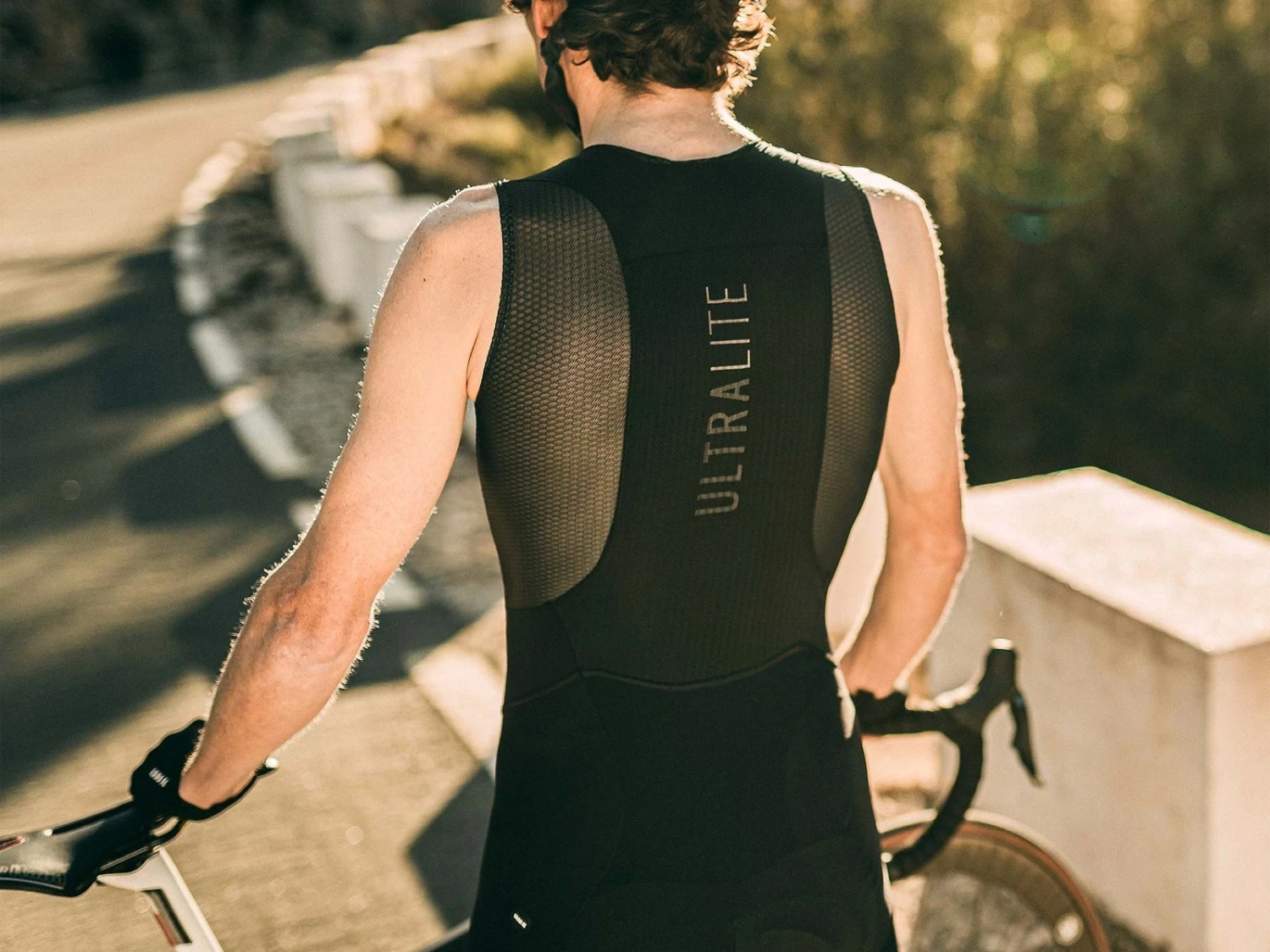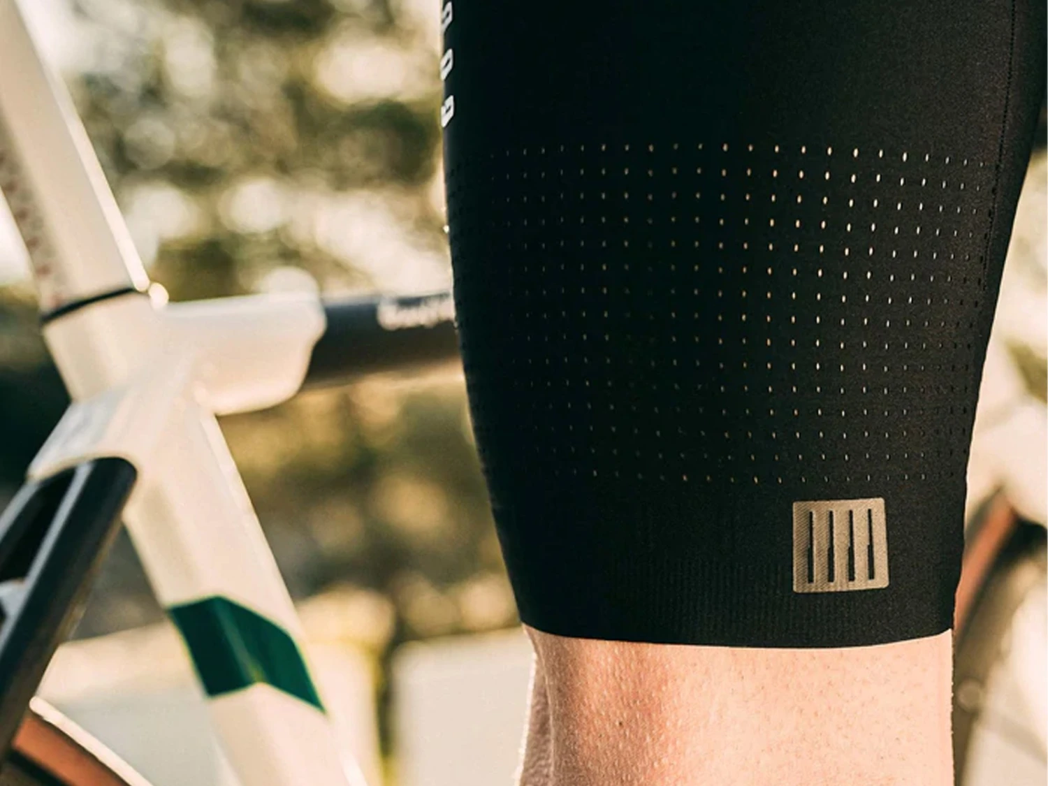 Nous avons choisi pour le corps du vêtement un tissu dense, perforé dans le bas et siliconé à l’extrémité, ce qui renforce l’opacité, la respirabilité et le maintien du au short cycliste.